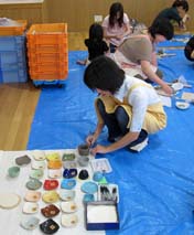 集会所でこども会の陶芸 |