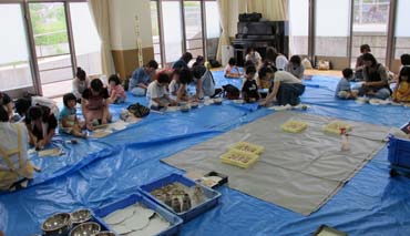 | 小学校の体育館で 子ども会の陶芸 |