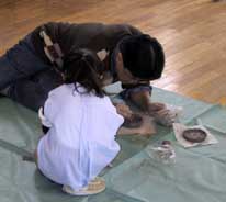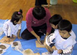 ほとんどのこども達が、はじめてさわる陶芸の粘土。いつもの粘土とちょっとちがうかな?