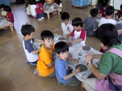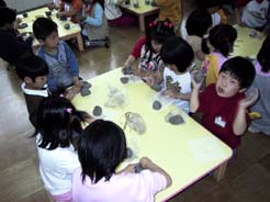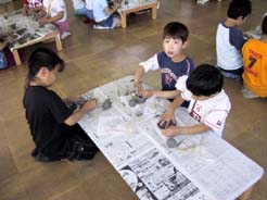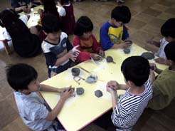 ほとんどのこども達が、はじめてさわる陶芸の粘土。いつもの粘土とちょっとちがうかな?