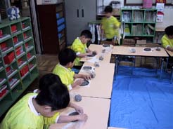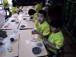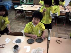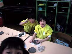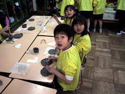 ほとんどのこども達が、はじめてさわる陶芸の粘土。いつもの粘土とちょっとちがうかな?