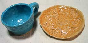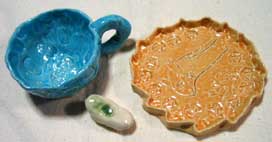 カップやお皿、お茶碗など、たのしい作品ができました。