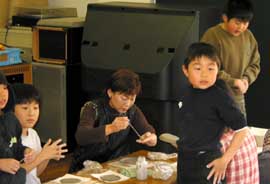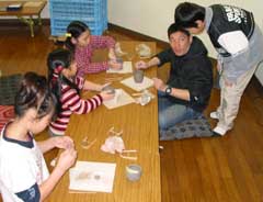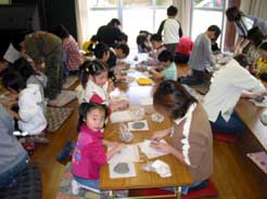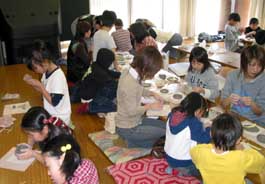 小雪の降る中、沢山の子ども達や親子で団地内の集会所で陶芸を楽しんで頂きました
