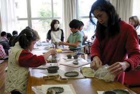 ほとんどのこども達が、はじめてさわる陶芸の粘土。いつもの粘土とちょっとちがうかな?