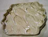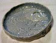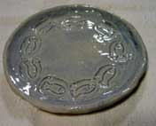 基本的な作り方の玉造り、タタラ、三島手で装飾し、
