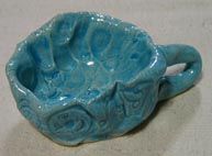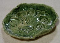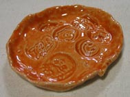 基本的な作り方で玉造り、タタラ、キャラクタ−印花による三島手で、装飾もしました。