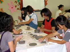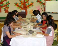 生駒市生駒台幼稚園の教養部で陶芸体験教室