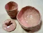 基本的な作り方で玉造り、タタラ、キャラクタ−印花による三島手で、装飾もしました。