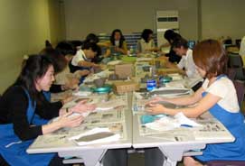 7月16日 作品と作陶カ−ドを組み合わせ梱包します。