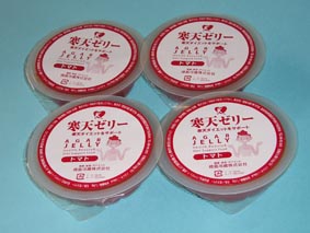 トマト寒天ゼリ− 内容量 120グラム 原材料 トマトピュ−レ・砂糖・ぶどう糖果糖液糖・寒天・ビタミンC