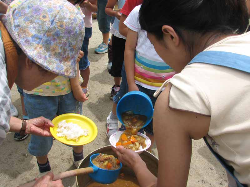 カレーをよそってもらう