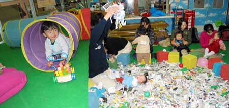 赤ちゃんから就園までの幼児は、いっぱいある遊びのコーナーを走りまわって大喜びでした。