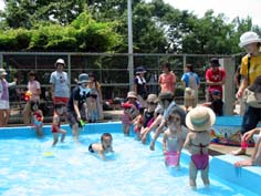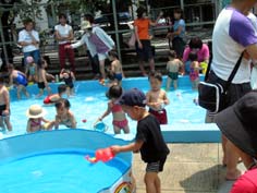 ママにつれられた子ども達(殆どは赤ちゃんです)大喜びで水遊びを楽しみました。