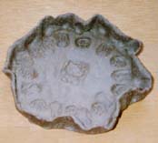 粘土を叩いてお皿を作ります。 |