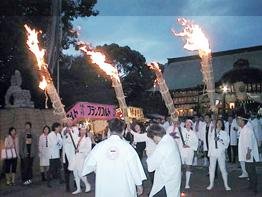 5月3日午後7時境内では、女性の持つ4本のたいまつを先頭に