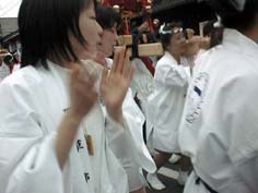 いつも御神輿を追っかけていた女性達、今年は念願がかなって御輿を担ぎました。