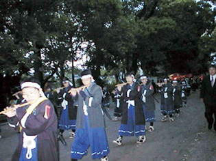 輿担ぎと鼓笛隊の行進がありました。