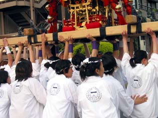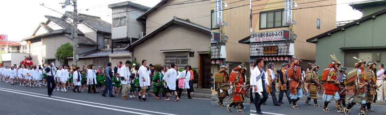 鎧武者を先頭に、子ども達の引っ張る御輿が続きます。