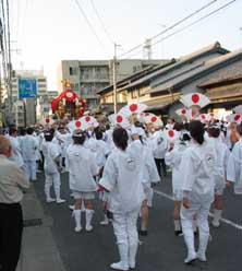 少年鼓笛隊を先頭に、子ども達の引っ張る御輿が続きます。