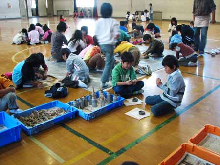 砂川小学校全児童が陶器作りに取り組みました。