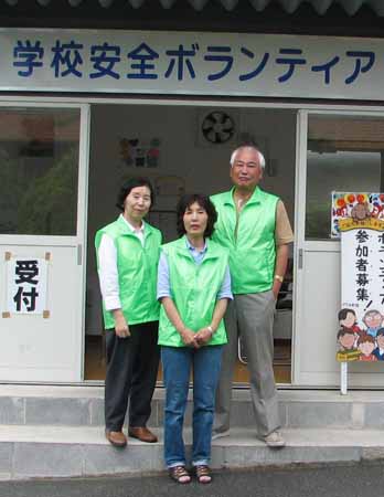校門での見張り役 学校安全ボランティアの制服?を新調しました。