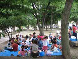木陰で 「いただきま〜す」
