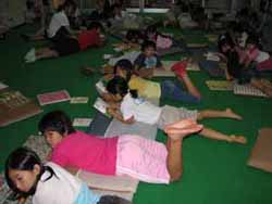 飯盒炊さんが終わった後児童館へ帰ってお昼寝タイムです。本を読んでました。