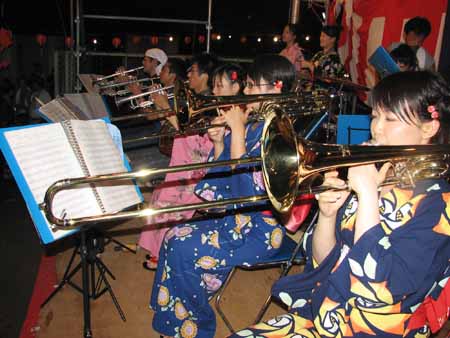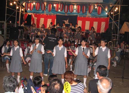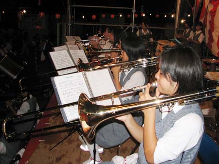 ステージでは 藤森中学生・龍谷大学ブラスバンド演奏 ・ カラオケ