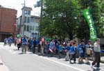 当日は五月晴れ 大勢の子ども達が御神輿を引っ張って町内を練り歩きました。