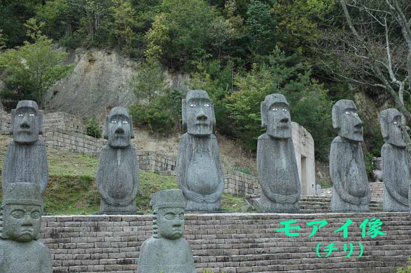 石像のアラカルト たくさんの石像があちらこちらに置かれています。名前と出身地はどれがどれやら ということで・・・