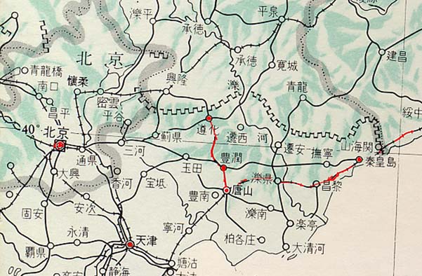 朝鮮の釜山から北上当時の満州を経由山海関→唐山まで列車にて、ここから軍用トラックで「豊潤」です。
