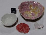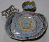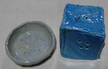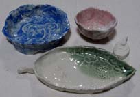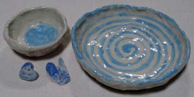 | 陶芸材料、道具類は私たちがご用意致します。ご用意頂く物(エプロン・古タオル) | 色見本からお好きな色(釉薬)を選んで頂きます。 |