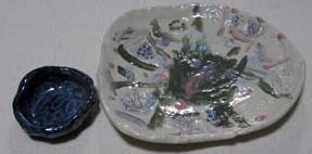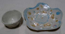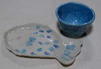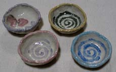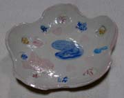 | 陶土は特選の白信楽を使用し、鮮やかな色合いの釉薬を用意してます。 | ご希望で下絵つけも出来ます。9色をとりどりに筆で絵付け出来ます |