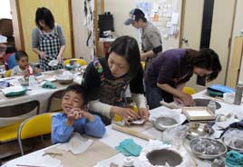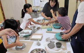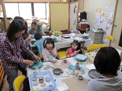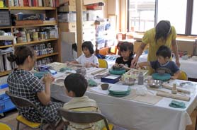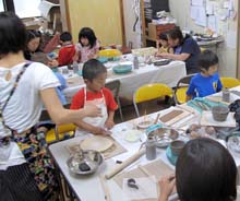| グル−プやレクリエ−ションでの特別開催も予約を受付しています。 | 玉造りや手ひねりで、十分作陶を楽しんで頂けます。 |