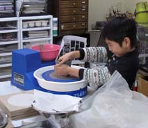 | 人気キャラクタ−印や印花・白化粧土で装飾を楽しんで頂けます。 | 出来上がった作品は持帰り、素焼き・釉がけ後本焼きします。 |