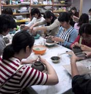 | グル−プやレクリエ−ションでの特別開催も予約を受付しています。 | 玉造りや手びねりで、十分作陶を楽しんで頂けます。 |