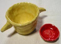 | 出来上がりは約1ケ月後(季節により)に、教室でお渡し致します。 | 陶芸粘土約600グラム使用、大人¥2,000円 子供(300グラム)¥1,000円です。 追加土も用意しています。 |