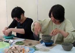 | グル−プやレクリエ−ションでの特別開催も予約を受付しています。 | 玉造りや手ひねりで、十分作陶を楽しんで頂けます。 |